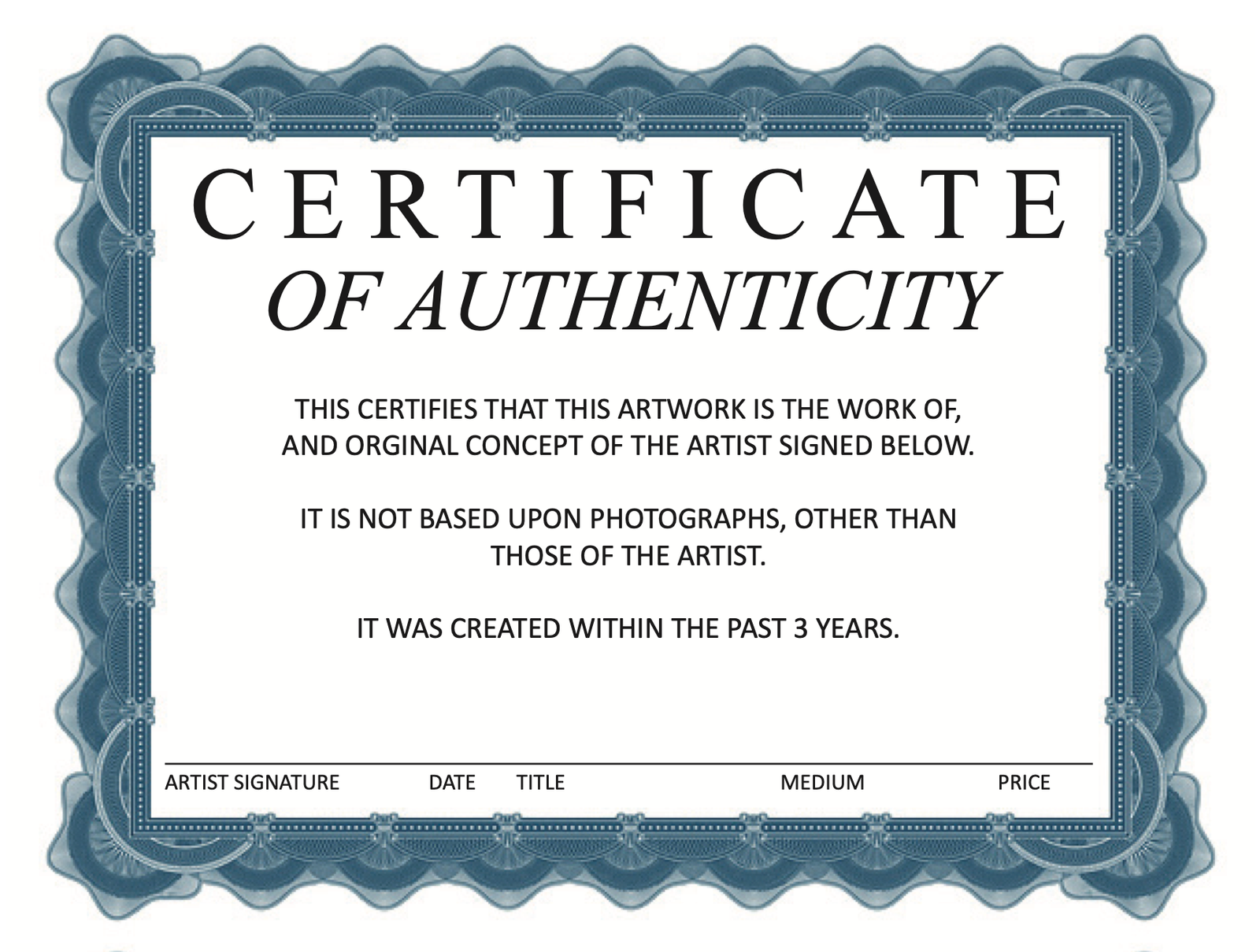 Certificate of Authenticity Form